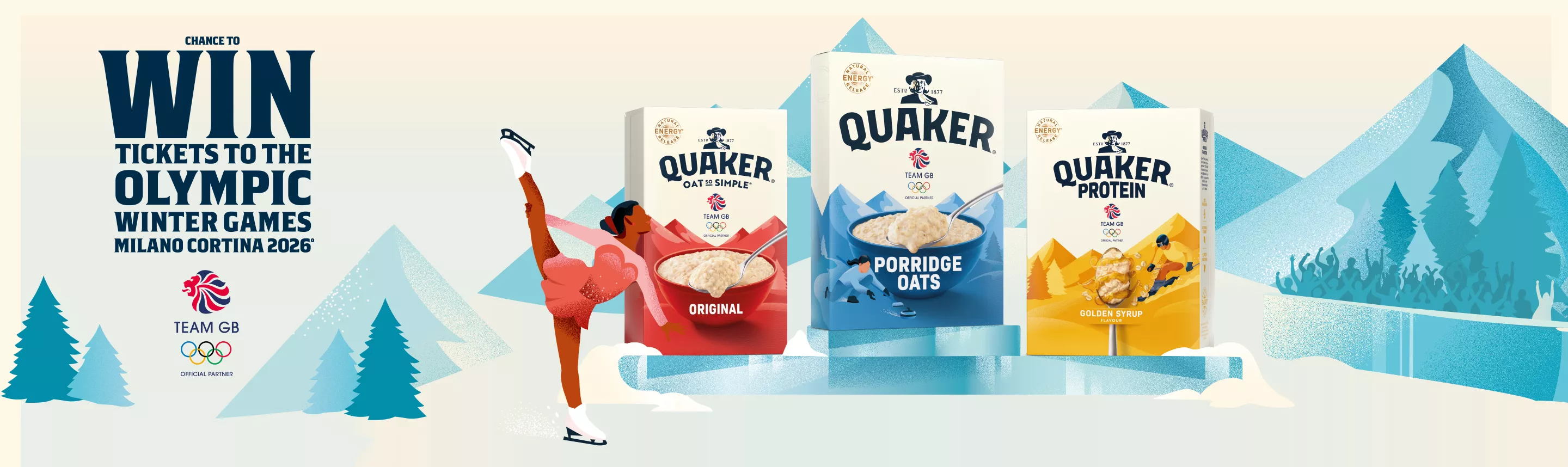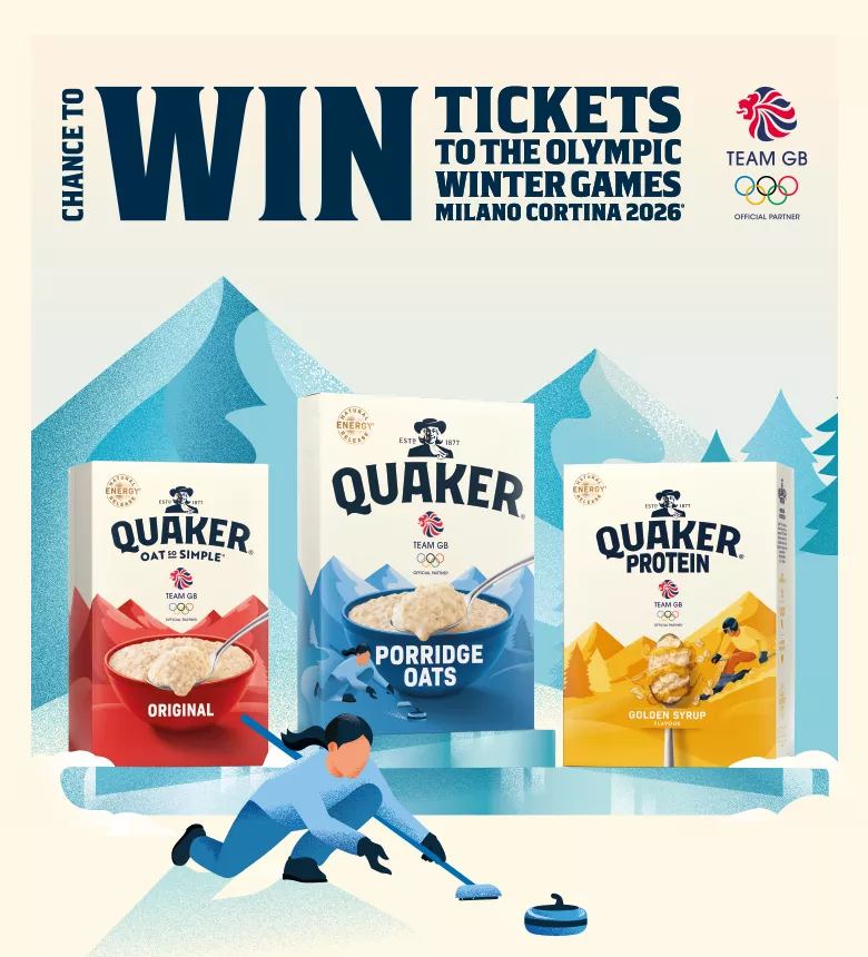 Quaker is now an Official Partner of Team GB! We’re backing British athletes all the way to Milano Cortina 2026 and beyond. From 1st October 2025 to 9th January 2026, pick up a promo pack for the chance to win one amazing prize — Olympic Winter Games Milano Cortina 2026 tickets, signed Team GB merch, or a £20 e-gift card!