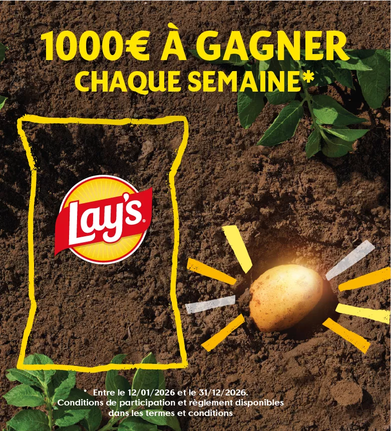 Bon de réduction immédiate de 30 centimes d’euros, valable jusqu’au 28/02/2027 inclus, sur les produits chips de la marque Lay’s et sur présentation à la caisse de votre magasin, en France, sous réserve de la disponibilité du produit.