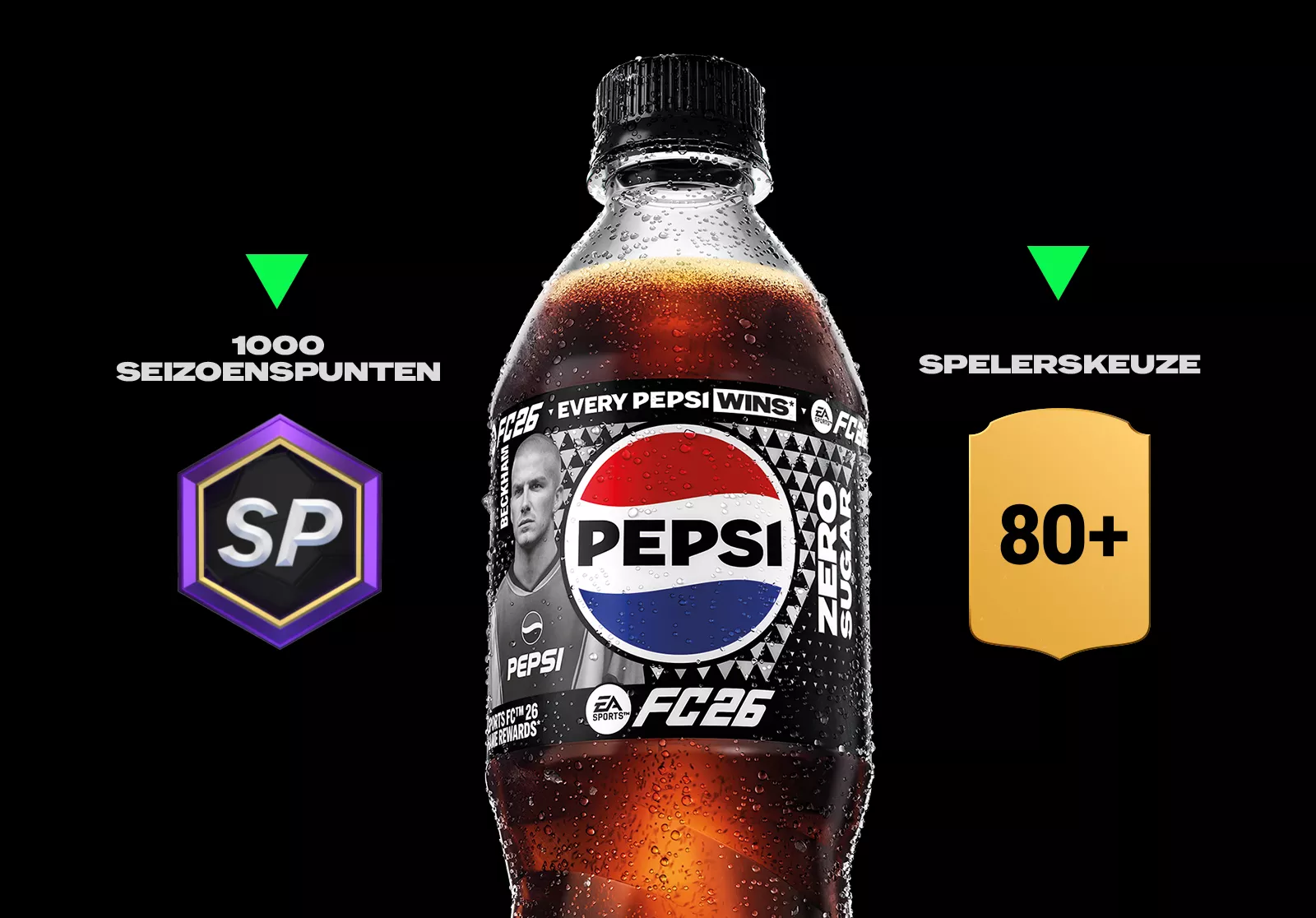 Deze actie biedt een in-game beloningspakket (cadeau) van Pepsi bij elk Pepsi Zero Sugar PET -actieproduct – deze beloningen kunnen worden ingewisseld in EA SPORTS FC™ 26 op ondersteunde platforms.