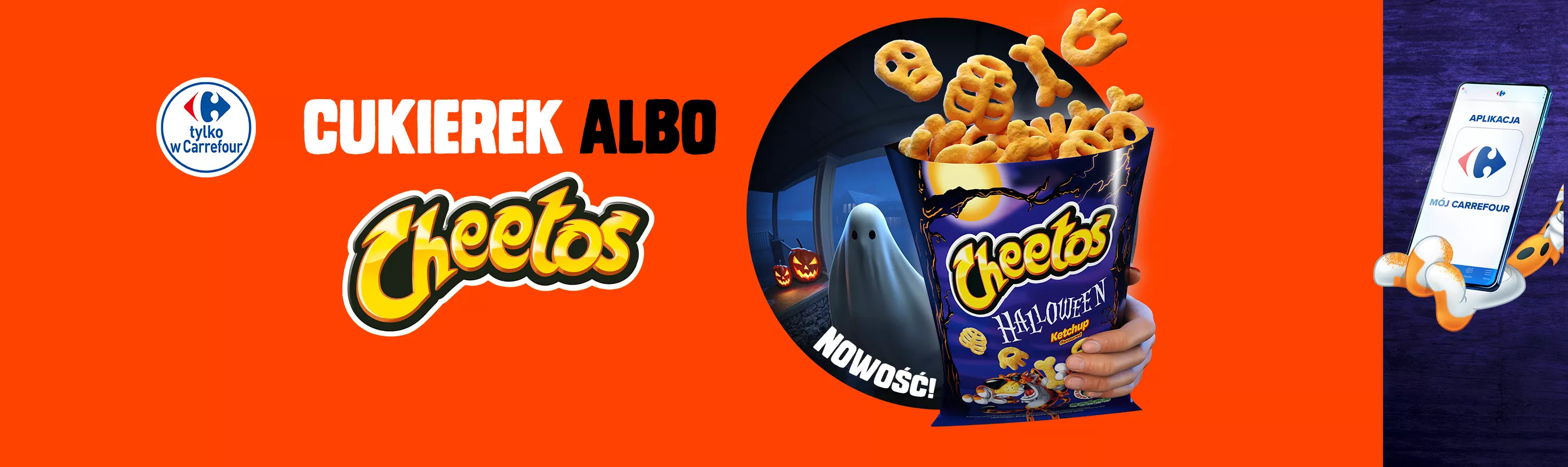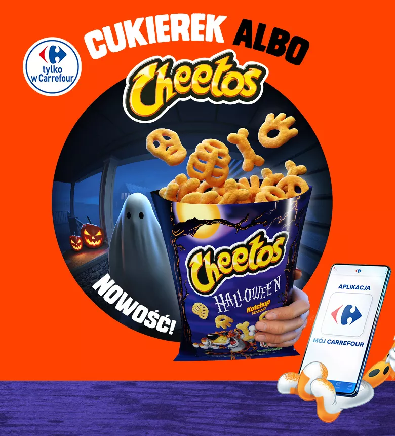 Kupuj Cheetos z aktywną aplikacją Mój Carrefour, zbieraj naklejki promocyjne i odbierz za każdą 5 zł w e-bonie na kolejne zakupy w Carrefour!