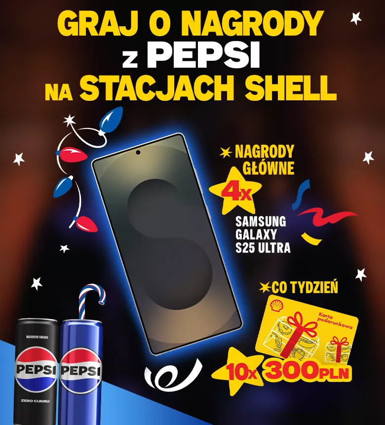 W tym konkursie do wygrania są 4 nagrody główne w postaci smartfona SAMSUNG Galaxy S25 Ultra oraz 80 nagród I stopnia w postaci karty podarunkowej Shell o wartości 300 zł do zrealizowania wyłącznie na stacjach Shell.