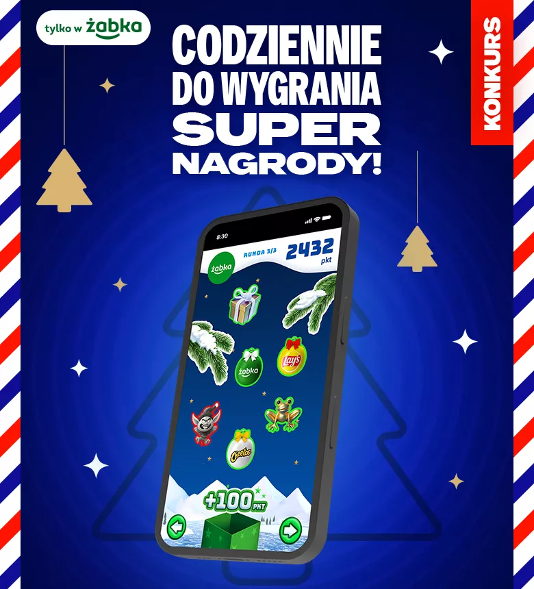 Konkurs trwa od 03.12.2025 roku do 18.12.2025 roku, z zastrzeżeniem, iż sprzedaż promocyjna w sklepach Żabka trwa od 03.12.2025 roku do 16.12.2025 roku.